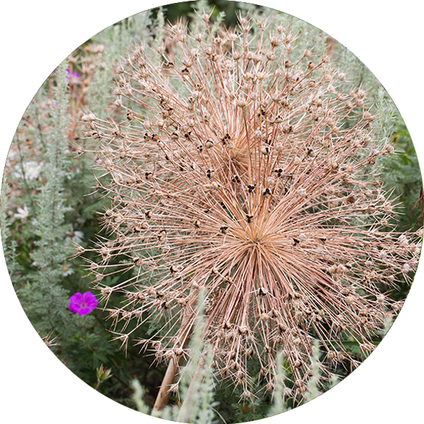 _listy okrasných cesnakov počas kvitnutia prirodzene vysychajú, preto je dobré premyslieť si presnú polohu vzhľadom okolité rastliny a miesto pozorovateľa
