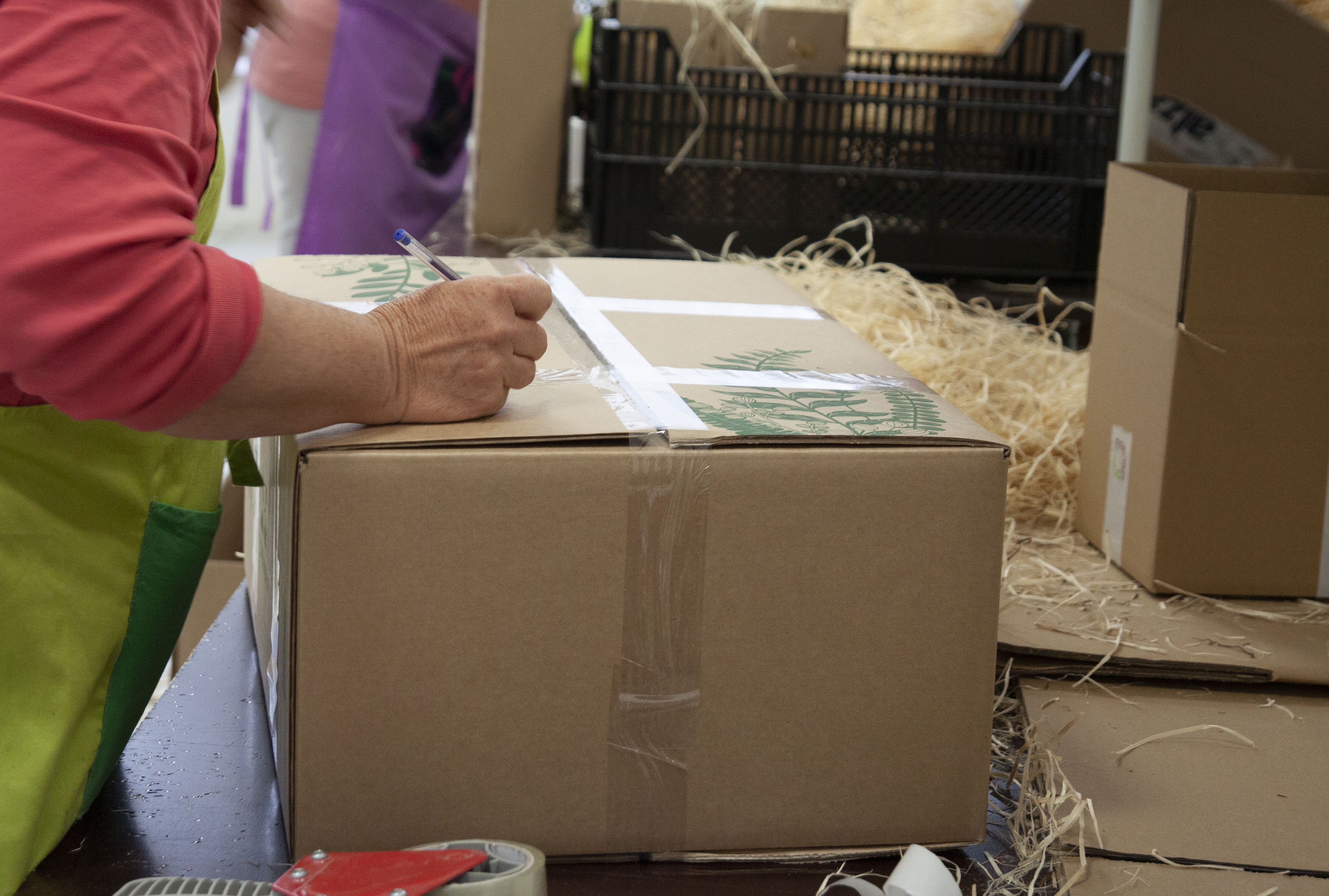 Následne objednávky putujú do baliacej haly, kde sú triedené, ošetrené, kontrolované a starostlivo balené.