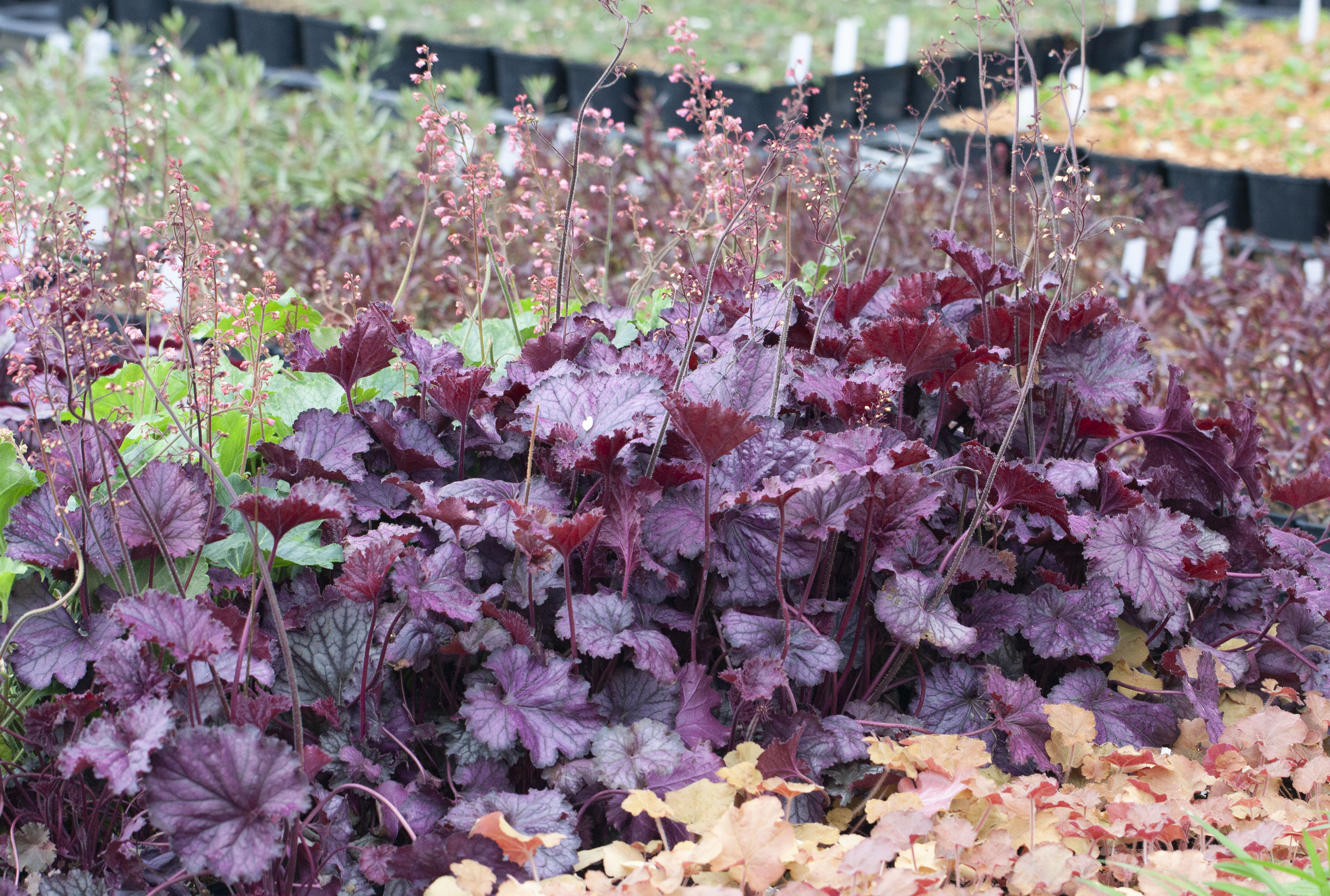 Ak zákazník nemá skúsenosti s pestovaním trvaliek, môže ho výška dodanej rastliny zaskočiť - tu však platí, že trpezlivosť ruže prináša - trvalky rastú veľmi rýchlo, mnohé dosiahnu dospelosť v prvom roku od výsadby, niektoré po 2-3 rokoch. Trvalky, ktoré rastú pomalšie, majú túto informáciu vždy v popise. Aby bola predstava o rýchlosti rastu bližšia - uvedieme príklad na heuchere - je to trvalka okrasná najmä listom. Na predošlých fotkách vidno sadbu na jar a potom na jeseň - stačilo im 5-7 mesiacov, aby takto nádherne podrástli.