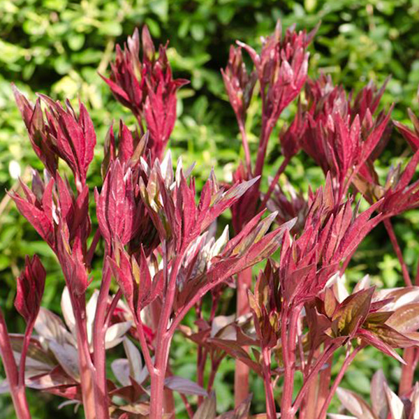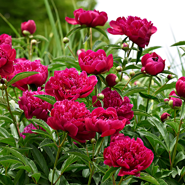 Skvostný záhon s pivonkami docielite aj kombináciou s tulipánmi, narcismi a modricami. Pivonky nám ponúkajú efekt už počas rašenia prvých listov v jarnom období. Ich bordovo-červené sfarbenie osvieži každý trvalkový záhon.