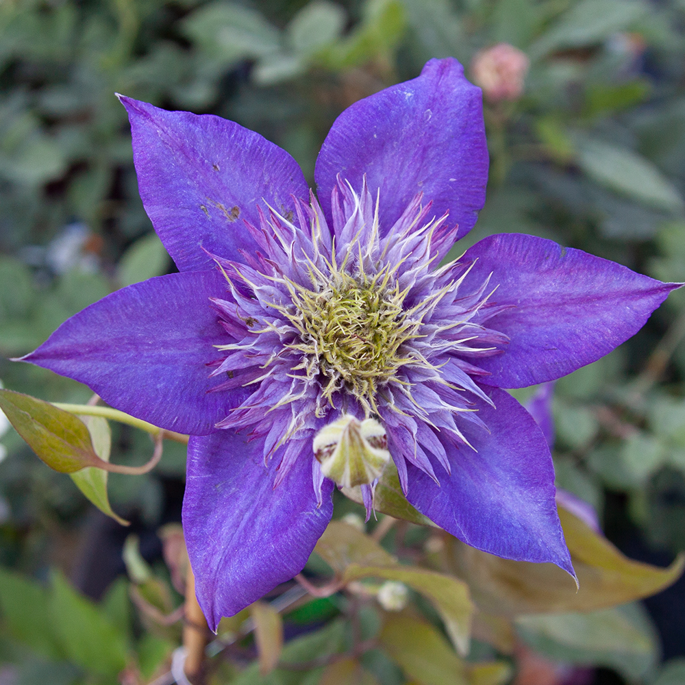 Clematis 'Multi Blue' je veľkokvetý popínavý plamienok s poloplnými kvetmi s priemerom do 14 cm. Okvetné lístky sú pozoruhodne tmavé, v strede sa vyskytujú lupienky s prevahou zelených okrajov. Kvety tohto nádherného kultivaru sa objavujú od jari, po priebežnom reze zakvitná znovu. Kvitnúť začína keď dosiahne výšku 100 cm, maximálne však dorastie 200 cm. Ako opora mu postačí menší strom i ker, ale rovnako spoľahlivo obrastie akúkoľvek inú oporu. Patrí k nižším plamienkom a preto je vhodný do menších záhrad a mobilných nádob.