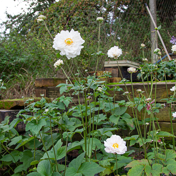 Anemone x hybrida 'Whirlwind' - ako sneh biela jesenná veternica. Charakteristický he habitus do výšky 65-75 cm. Kvety sú poloplné, bielej farby, v priemere 5 cm veľké. Násada kvetov je veľmi bohatá od konca leta až do prvých mrazov. Vďaka svojim vlastnostiam vyniká vo väčších výsadbách i v nádobách. Naše odporúčanie: Rok po vysadení rastlinku prikryjeme čečinou na ochranu pred silným mrazom.