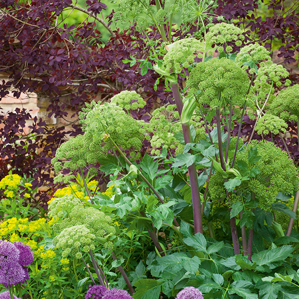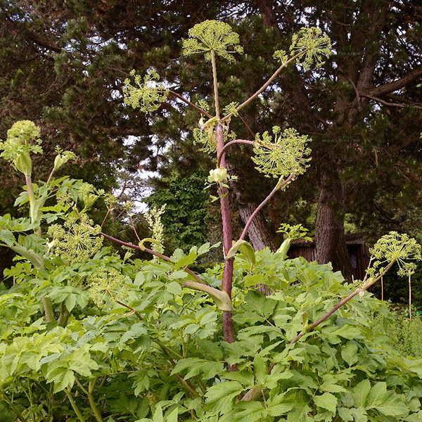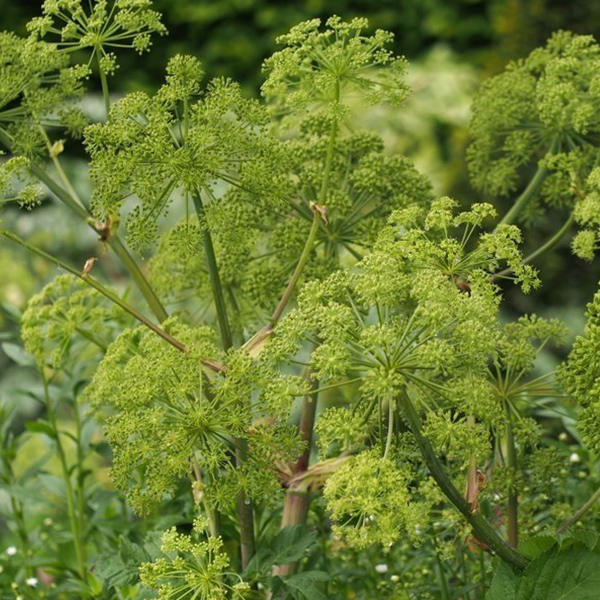 Angelica archangelica - jedlá, liečivá štrukturálna trvalka vzhľadná kvitnutím, listami a aj svojou výškou. Dosahuje 150-180 cm, pričom na malebných stonkách nesie hlávkovité zelenkasté okolíky. Kvitne od polovice leta a svoj pôvab si udržuje do prvých jesenných dní. Celá táto nádhera vyrastá spod zelených vykrajovaných listov. Môže konzumovať, avšak často dochádza k zámenám s inými podobnými druhmi, ktoré sú jedovaté. Uplatnenie nájde ako okrasná solitérna trvalka v záhonoch so stračonôžkami, lupínami, fakľovkami, okrasnými cesnakmi a trávami.