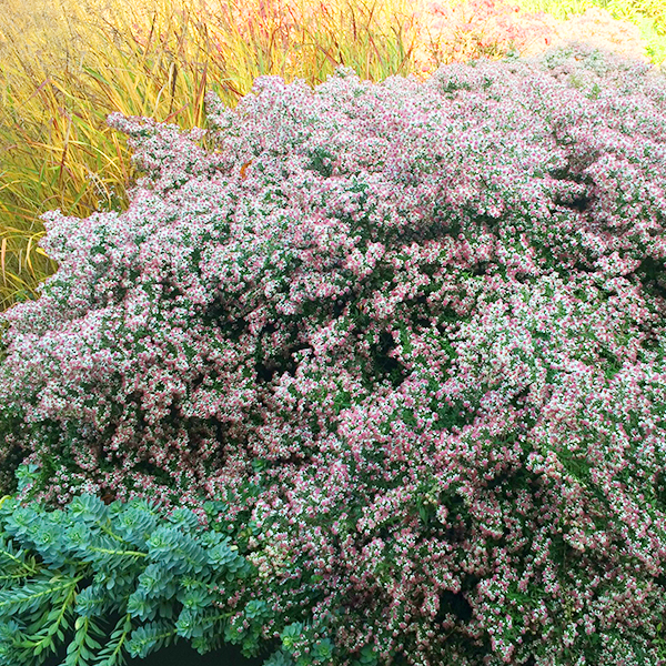 Astra lateriflorus var. horizontalis je rozložitá, bielo-ružovými kvetmi obsypaná astra kvitnúca od konca leta. Kvety sú drobné, svetlé, stonky tejto trvalky vyrastajú do horizontálneho smeru. Je to cenná rastlina zaujímavá najmä svojou štruktúrou, pôsobí ako malý ker a je vhodnou výplňovou trvalkou do zmiešaných kvitnúcich výsadieb.