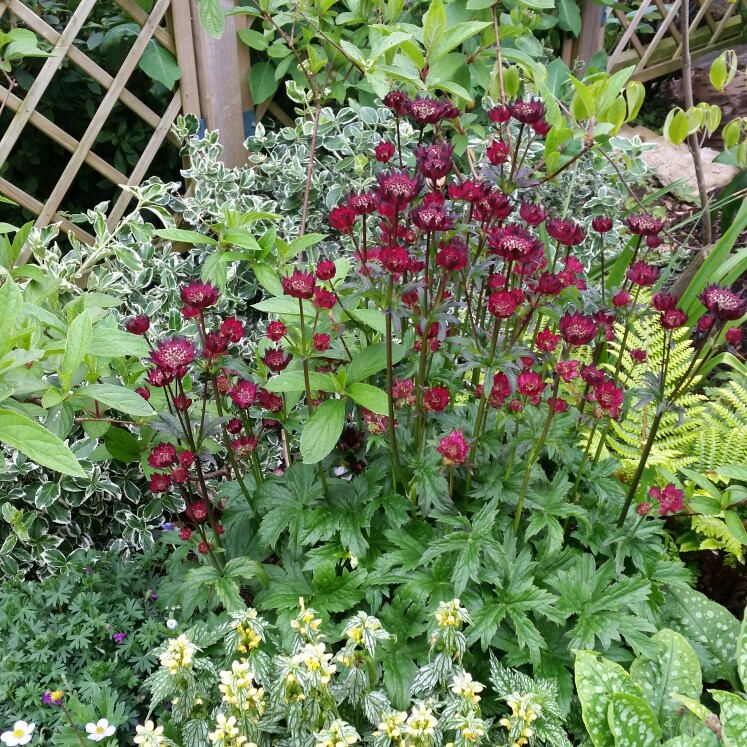 Astrantia 'Moulin Rouge' je nízkym kultivarom s krvavo červenými kvetmi. Rastliny sú bohatého habitusu s násadou kvetov počas celého leta. Ideálne sa jej darí v polotieni, na záhonoch pri okrajoch korún stromov. Vhodné sú tiež vlhšie humózne pôdy napríklad pri jazierkach. Dosahuje výšku 40-45 cm.