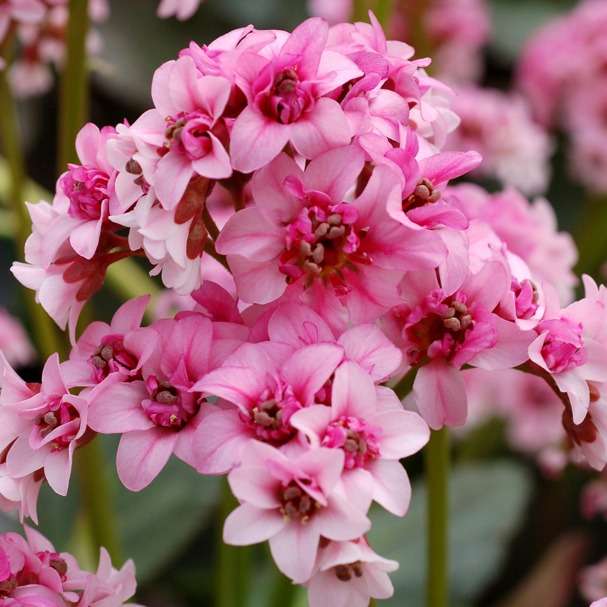Bergenia 'Dragonfly Sakura' je novým kultivarom z dielne šľachtiteľov v Terra Nova Nurseries. Za svoj názov vďačí veľkým ružovým kvetom, ktoré sú poloplné a podobajú sa na kvety japonskej čerešne – sakury. Listy sa na jeseň ako farbia do purpurova ako u ostatných bergénií. Kultivar sa tiež vyznačuje výborným zdravotný stavom a kompaktným habitom.