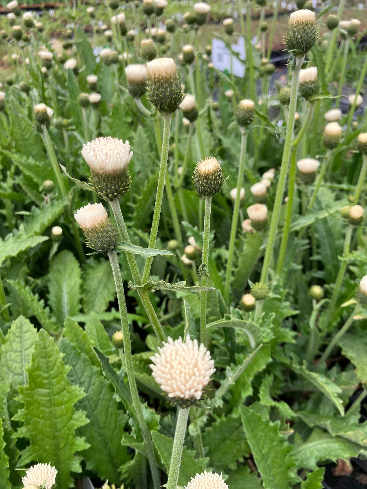 Cirsium 'Frosted Magic' - pichliač, vysoká trvalka vhodná do prírodných a naturálnych záhrad. Dosahuje výšku 100-120 cm, šírku 40-55 cm. Na dlhej stonke sa nesú smotanovo-biele kvety vo veľkosti 3-4 cm, pričom ich neustále obletujú včely a motýle. Listy sú pomerne veľké, vykrajované, šedozelené a chĺpkaté. Vyžaduje slnečné alebo mierne tienisté stanovište s pôdou bohatou na živiny, ktorá je dobre priepustná. Do ílovitej zeme preto odporúčame zapracovať piesok a záhradnícky substrát.