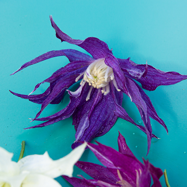 Clematis 'Blue Surprise' je výnimočný plamienok so zvončekovitým plným kvetom. Ten dosahuje priemer až 12 cm a čo je veľkým potešením - ide o remontantný, čiže opakovane zakvitajúci plamienok. Jednotlivé kvety majú modro-fialovú, veľmi sýtu farbu, tyčinky sú žlté. Kvitne v máji a neskôr na konci leta. Listy sú sýtozelené a dekoratívne, veľké 18 až 20 cm. Potrebuje stojacu oporu, treláž, pergolu, štrukturovaný múr alebo pletivo, po ktorom sa môže popínať. Bez vyviazania je ale zaujímavou pôdopokryvnou rastlinou. Otcom kultivaru C.'Purple Dream' je známy Szczepan Marczyński, ktorý ho na trh uviedol v roku 2021.