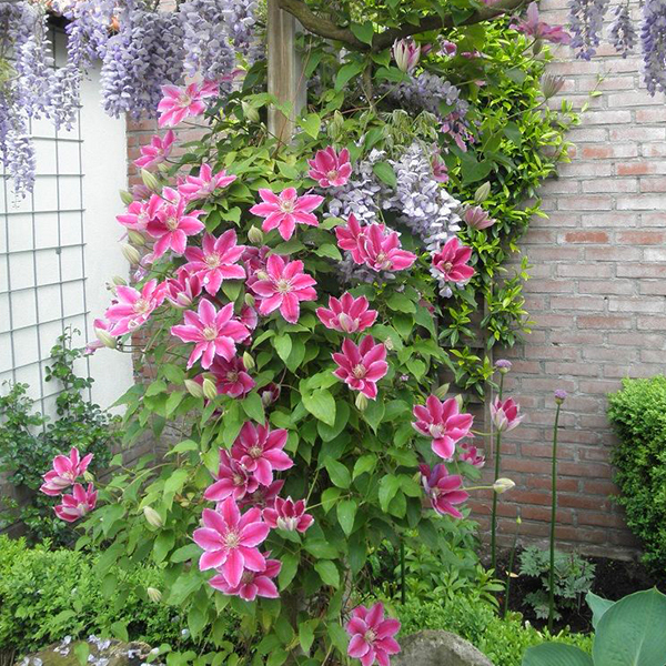 Clematis 'Doctor Ruppel' - krásna popínavá rastlina s veľkým kvetom. Ružový plamienok, ktorý vynikne na opore, pergole alebo treláži. Kvety sa objavujú začiatkom leta v prvej vlne a po miernom reze v závere leta.