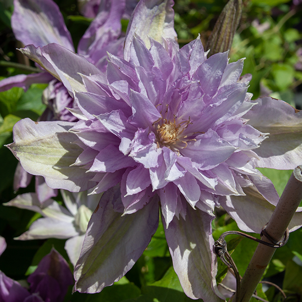 Clematis 'Proteus' je plnokvetý, bledý, fialovo-ružovkastý plamienok. Tvar kvetov je variabilný, pri druhej vlne kvitnutia bývajú kvety jednoduché. Kvitne najmä počas leta. Potrebuje stojacu oporu, pri dostatočnom prídele slnečných lúčov zakvitá celý ker.
