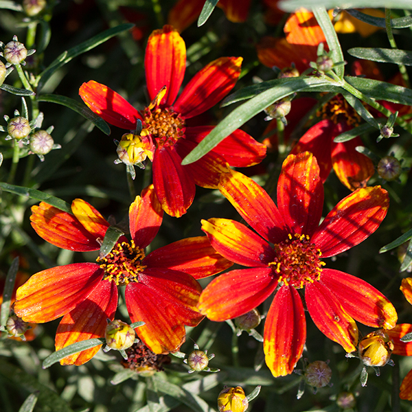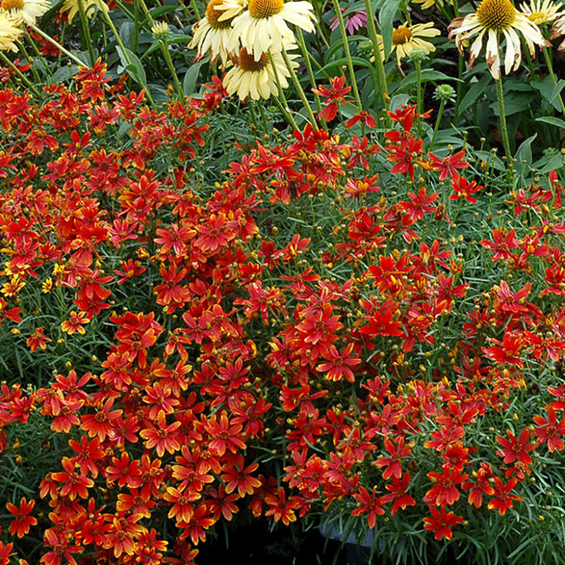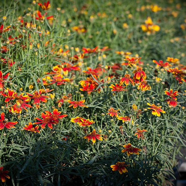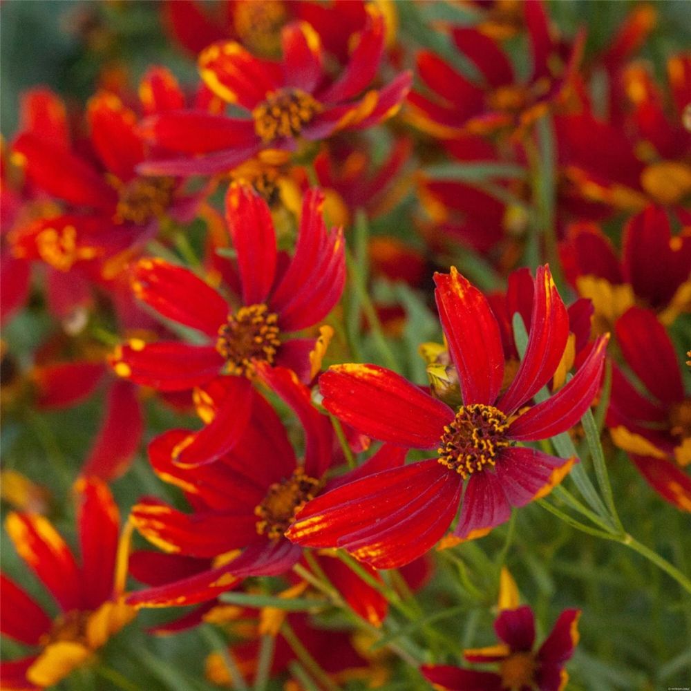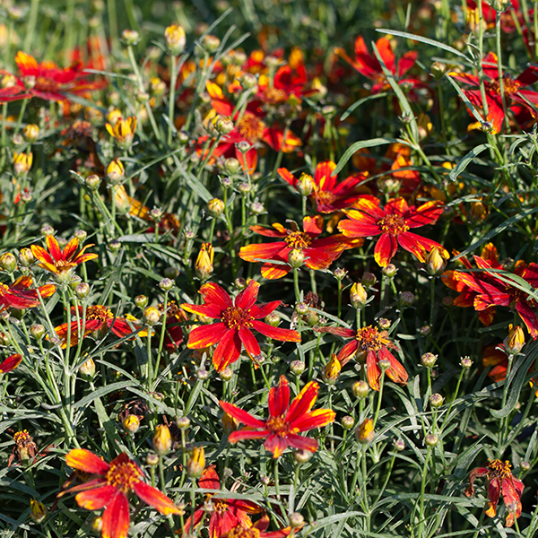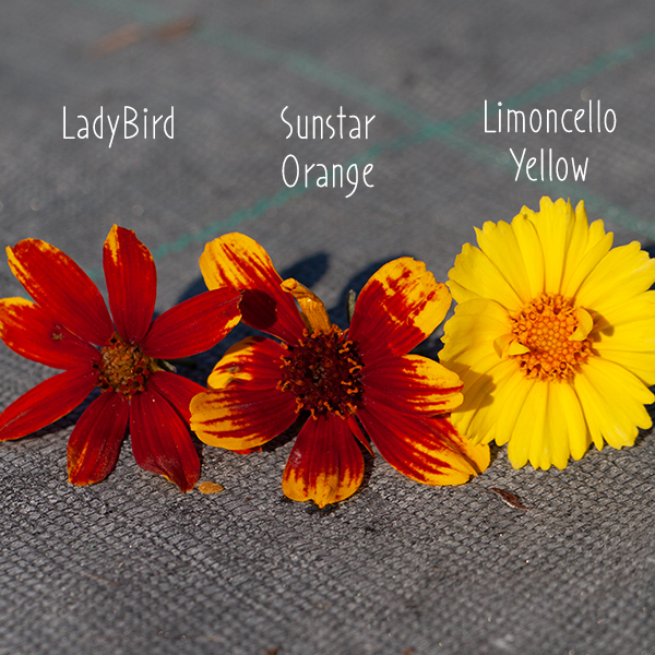 Kráska Coreopsis hybrida 'Ladybird' je čevrená ako krídla lienky, má variabilné využitie, jej krása vynikne rovnako v záhone, ale aj ako nadýchaný červený obláčik v kombinácii s letničkami vo väčšej nádobe. Kvety sú výraznej červenej farby so žltým krajom. Listy tmavozelené. Dosahuje výšku 30-35 cm.