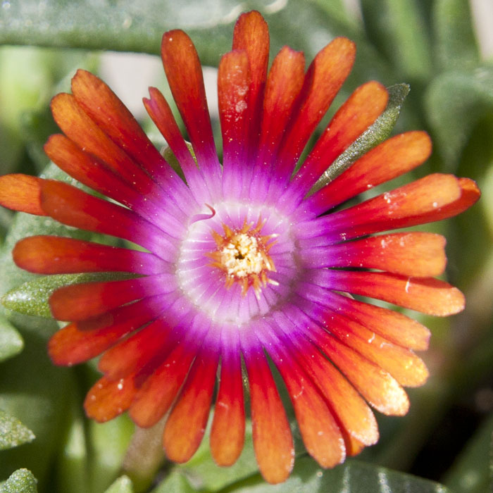Jedna z najkrajších noviniek. Na trh bola uvedená v roku 2012 a okamžite sa stala veľkým hitom po celom svete. Kultivar poludňovky Delosperma 'Fire Spinner' vyniká veľkými oranžovými kvetmi s fialovým stredom. Rast je plazivý, vďaka čomu je schopná táto nádherná skalnička pokryť aj väčšiu plochu. Kvety sa objavujú vo vlnách od jari až do jesene.