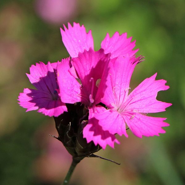 Dianthus carthusianorum - klinček kartuziánsky - naša domáca viacročná bylina, ktorá sa hojne vyskytuje vo voľnej prírode. Trvalka sa vyznačuje kvitnutím počas celého leta. Drobné sýtoružovo zafarbené kvety nesú tenké stonky do výšky od 30 do 50 cm. Na vlahu nenáročná trvalka, ktorá je najkrajšia na slnečnom stanovišti s dostatočne štrkovitou, priepustnou pôdou.