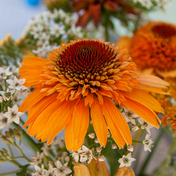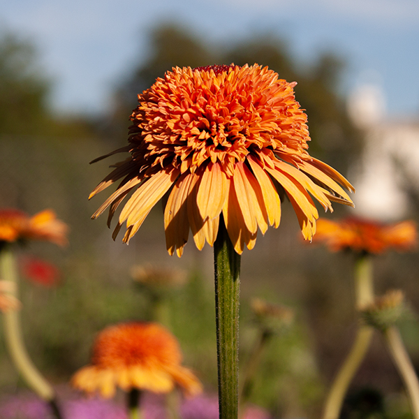 Echinacea 'Supreme Cantaloupe' sa vyznačuje tmavooranžovým, neskôr bledooranžovým plným kvetom s vypuklým stredom. Rastliny zakvitajú od začiatku leta až do jesene. Dosahuje výšku 65-75 cm.