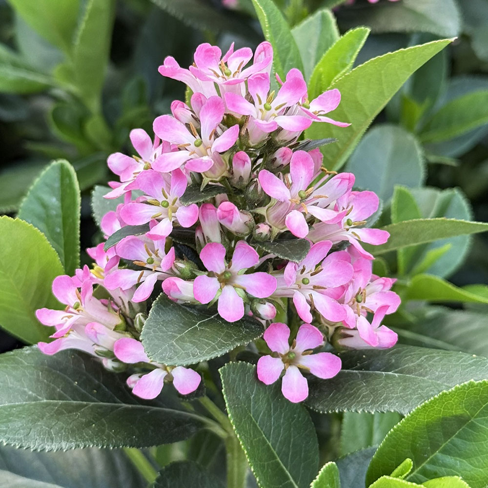 Escallonia 'Pink Elle' je okrasný vždyzelený ker juhoamerického pôvodu, ktorý sa vyznačuje veľmi dlhým kvitnutím. Svojim kompaktným vzrastom je veľmi dobre prispôsobený na pestovanie aj vo forme živého plotu. Veľmi dobre sa mu darí aj v kvetináči (možnosť umiestnenia do zimnej záhrady). Kvety majú sýto ružové sfarbenie. Kvitne počas celého leta - od júna až do septembra. Rastie do výšky maximálne 140 cm. .