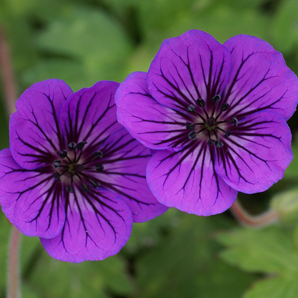 Veľkokvetý pakost modrej farby s výraznou tmavou žilnatinou.