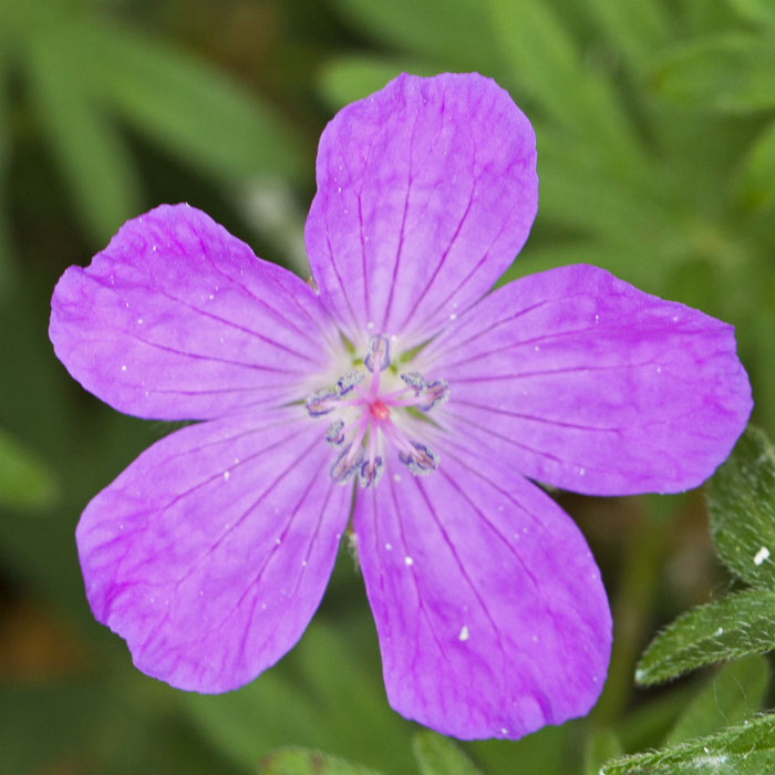 Veľkokvetý pakost modrej farby s výraznou tmavou žilnatinou.
