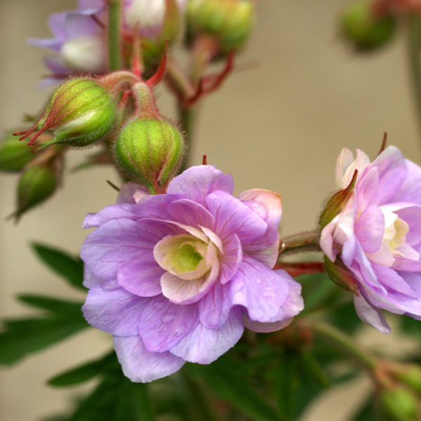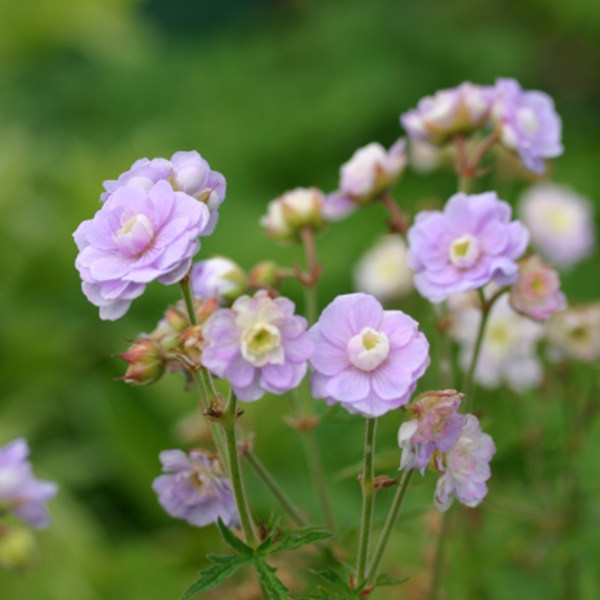 Geranium pratense 'Summer Skies' - poloplný bledofialový, až bledomodrý pakost. Dosahuje výšku 40-50 cm počas kvitnutia, avšak rastie bochníkovito až pôdopokryvne, chráni miesto výsadby pred náletmi burín. Výborné vlastnosti má nielen ako záhonová trvalka, ale je vhodný aj na pestovanie vo vonkajších nádobách. Pre pestovateľov, ktorí milujú prírodné kytice je vzdušným, jemným doplnkom.