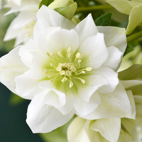 Helleborus orientalis 'Double White' sa vyznačuje nesmierne zaujímavým, veľkým bielym kvetom s viacerými radmi lupeňov. Snehobiela farba je v záhonoch pútavá a rozjasňuje priestor. Helleborus orientalis 'Double White' je vysoko cenená pre zberateľov čemeríc.