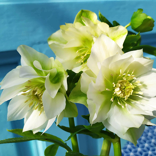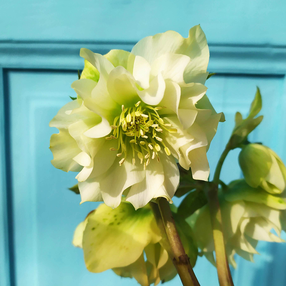 Helleborus orientalis 'Double Ellen White' je kultivarom s plným, čisto biely kvetom. Niekedy sa vyskytuje mierne červené bodkovanie v strede kvetu. Kvety sa objavujú od februára do apríla a aj po odkvitnutí zostávajú takmer mesiac efektné. Čemerica je typickou trvalkou, vhodnou pre výsadby do polotieňa. Pri odkvitaní prevažuje zelená farba.