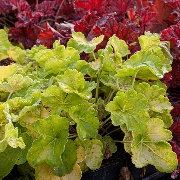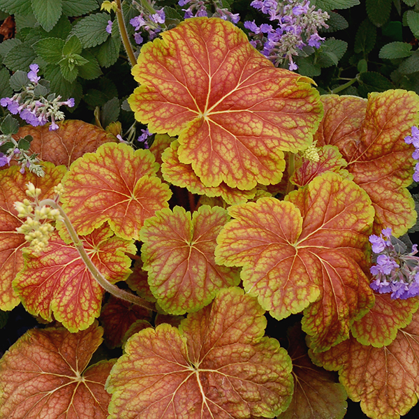 Neodolateľná heuchera so striebristo purpurovým listom.