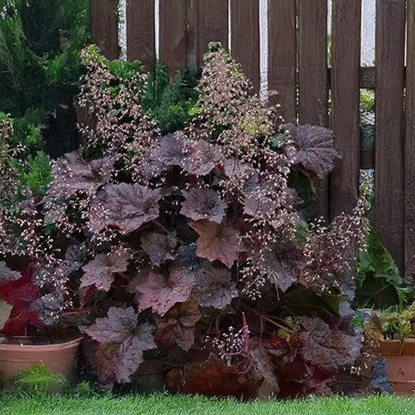 Heuchera ‘Palace Purple' je trvalka, ktorá zaujme aj bez kvetov. Svojimi purpurovo-fialovými listami dokáže rozžiariť každý záhon. Listy majú metalický odlesk, ktorý sa mení v závislosti od svetla a ročného obdobia, čo jej dáva výnimočný dekoratívny efekt počas celej sezóny.