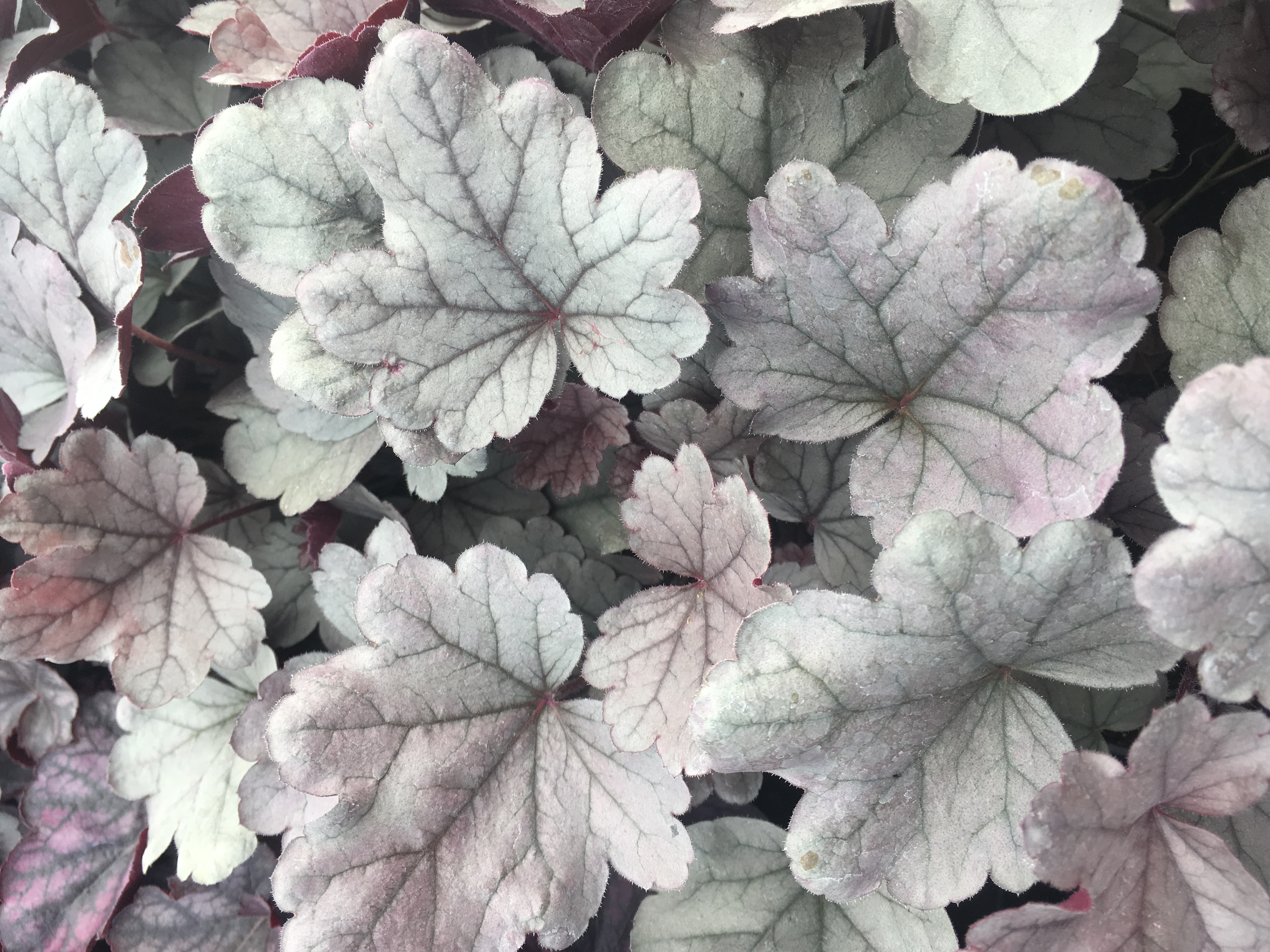 Heuchera 'Silver Gumdrop' je kultivar so zaujímavým purpurovo-striebristým listom . Kvety sú drobné zvončekovité, ružovej farby.