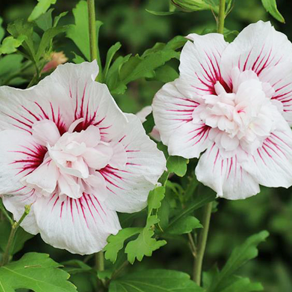Hibiscus 'Starburst Chiffon' je plnokvetý ibištek s červeným očkom a bielym okrajom okvetných lístkov. Začiatkom júla obsype kvetmi svoje konáre a tak sa z neho stane dominanta výsadieb. Patrí do skupiny Chiffon odrôd, ktoré vyšľachtil anglický botanik Dr. Roderick Woods. Okázalé kvety sú dvojfarebné a veľmi veľké, 7-8 cm v priemere.