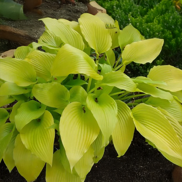 Hosta 'Sunny Halcyon' je jedinečná odroda obľúbenej modrolistej hosty Halcyon, ktorá prináša do tieňa zlatý nádych. Jej listy sú sýto žlté až žltozelené s jemným matným povrchom, ktorý počas sezóny postupne prechádza do sviežich tónov. Tento farebný kontrast dodáva záhrade hravosť a svetelný akcent aj na miestach, kde to nikto nečaká.