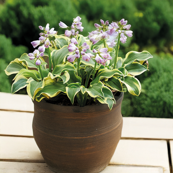 Hosta 'Mini Skirt' je okúzľujúca miniatúrna funkia, ktorá si získa srdce každého milovníka trvaliek. Má drobné, modrozelené listy s výrazným krémovo-žltým lemom a jemne zvlneným okrajom, čo jej dodáva roztomilý, až hravý vzhľad. Vďaka svojej kompaktnej veľkosti je ideálna na výsadbu do črepníkov, na okraje záhonov alebo do skalkových kompozícií.