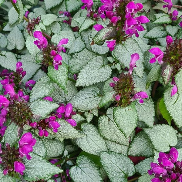 Lamium 'Beacon Silver' je nádherný kultivar hluchavky škvrnitej kompaktného rastu, listu sú striebristé, so zeleným okrajom. Za chladného počasia prechádza zelená farba v liste na fialovú vďaka čomu vzniká nádherná hra farieb. Kvety sú purpurové, priebežne sa objavujú na rastlinách po celý rok. Používa sa k vytvoreniu pokryvu v ťažko ozeleniteľných miestach pod korunami stromov. Taktiež ju možno použiť ako náhradu trávniku v tienistých lokalitách. Na pôdu je nenáročná, hoci ideálne sú vlhšie pôdy, v záhradách výborne toleruje aj mierne sucho. Znesie stanovište s plným slnkom, avšak dostatočná zálievka je podmienkou prosperovania.
