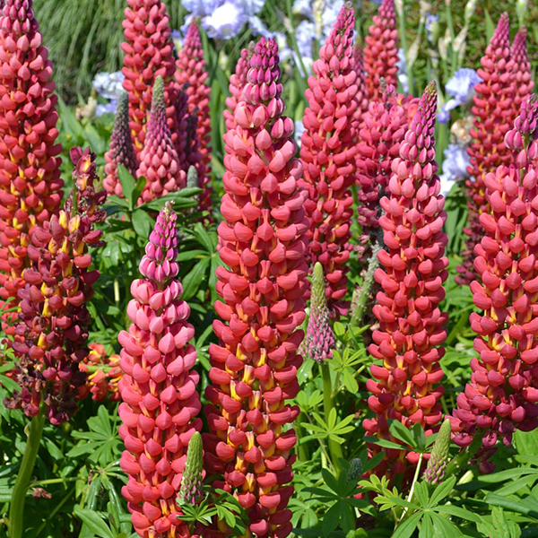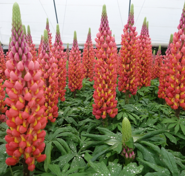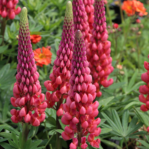 Lupinus 'Towering Inferno' je nádhernou lupínou, ktorá sa vyznačuje dvojfarebnými, oranžovo-červenými kvetmi. Tento kultivar patrí do série Lupinus West Country, ktorá je pomenovaná podľa rovnomennej anglickej škôlky. Tá sa špecializuje práve na šľachtenie lupín. V sérii je možné nájsť kultivary so žiarivými farbami, či netradičné dvojfarebné kombinácie. Všetky rastliny sa vyznačujú veľkou násadou mohutných kvetov. Sú množené výhradne vegetatívne, čo zaručuje pravosť odrôd.