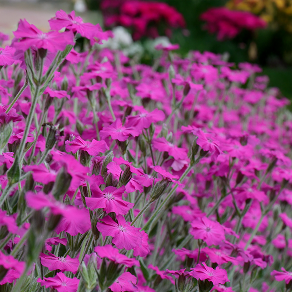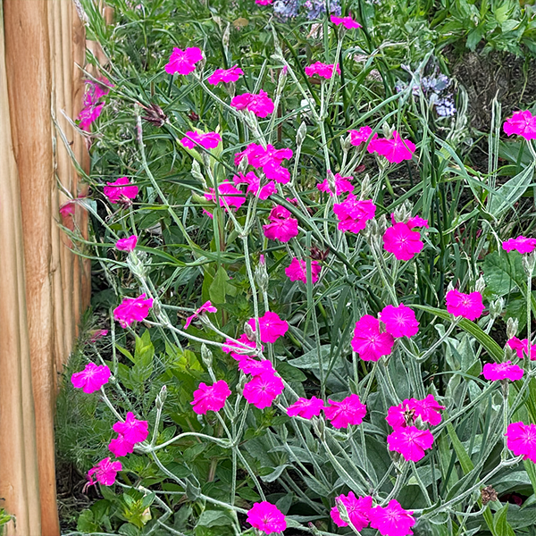 Lychnis ‘Hill Grounds’ je pôvabná novinka v sortimente, ktorá spája striebristý vzhľad s pestrým kvitnutím. Tvoria ju husté rozetky jemne šedo-strieborného, plsteného lístia, z ktorých už začiatkom mája vyrážajú čipkované výhonky nesúce súkvetia magentovej farby kvetov. Kvety sa objavujú v otvorených špirálach a rozkvitania trvá až do leta – ideálna voľba pre tých, ktorí milujú farbu bez neporiadku z vysiatych semienok.