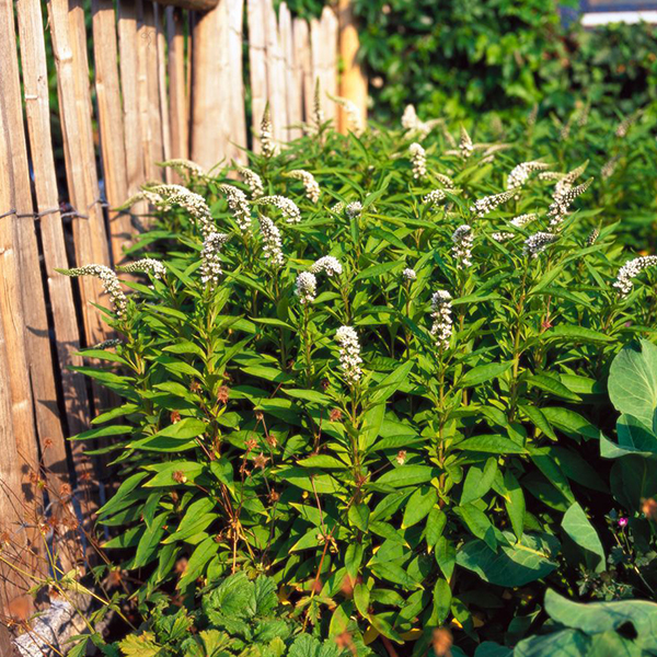Lysimachia clethroides (čerkáč), patrí k tradičným záhonovým trvalkám s bielym kvetom vhodnýmna slnko a polotieň. Vo výške 80 až 90 cm zakvitá počas leta ohnutými latnatými bielymi kvetmi. Listy sú úzke a sýtozelené. Je vhodná do skupinových výsadieb napríklad do romanticky štylizovaných záhrad spolu so stračonôžkami, vysokými zvončekmi, hortenziami a plamienkami. Rozrastá sa výbežkami a preto vytvára priam dokonalý zapojený porast, pokiaľ sa kombinuje po skupinách. Esteticky pôsobí ako súčasť aranžmánov z rezaných kvetov vo váze. Čerkáč (vrbina česky) potrebuje výživné a priepustné pôdy, ktoré sú však dostatočne zalievané. Je citlivý na sucho.