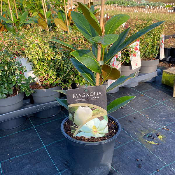 Magnolia grandiflora 'Little Gem' - stálozelený druh stĺpovitej magnólie pochádzajúci z USA. Biele kvety, ktoré príjemne voňajú, sa objavujú počas leta. Môžu mať viac ako 25 cm. Sú aromatické po citrusoch s prímesou sladkej vône. Preferujte slnečné, až polotienisté stanovište a mierne vlhkú, dobre odvodnenú pôdu. Rastie ako hustý ker, po rokoch ako strom. V Európe dorastie približne do 2-ich až 6-ich metrov. Magnólia má tmavozelené, extrémne lesklé, neopadavé veľké listy. Vyžaduje veľmi výživnú, vlhkú, ale dobre priepustnú pôdu s dostatkom humusu, skôr kyslú alebo neutrálnu. Pravidelný rez nepotrebuje.