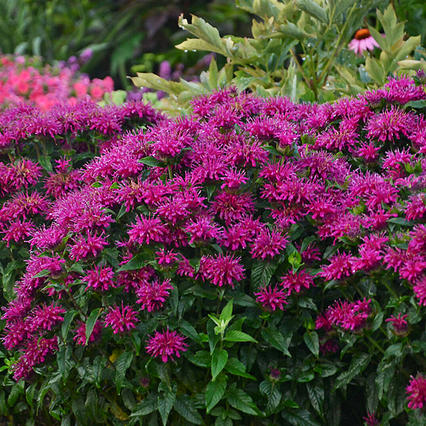 Monarda 'Grape Gumball' je nízka fialová až cyklámenová trvalky, výborné lákadlo pre užitočný a medonosný hmyz. Kvitne od polovice do konca leta a s výškou do 30-40 cm je ideálna aj na výsadbu do mobilných nádob. Kultivary z rady 'Sugar Buzz' sú vzrastovo menšie a ich kvety nápadne lákajú lietavý hmyz. Odolávajú aj múčnatke, ktorá pomerne často napáda listy. Je to klasická záhonová trvalka. Nádherné sú kombinácie so šalviami (Salvia 'Blauhügel'), margarétami (Leucanthemum 'Becky'), stredne vysokými okrasnými trávami. Stanovište by malo byť slnečné, s pôdami dostatočne živnými.