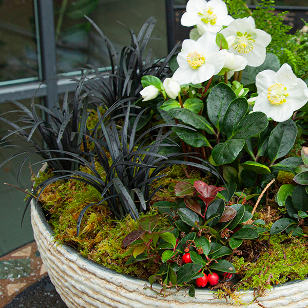 Vianočná ružová trvalka s kvetmi v decembri.