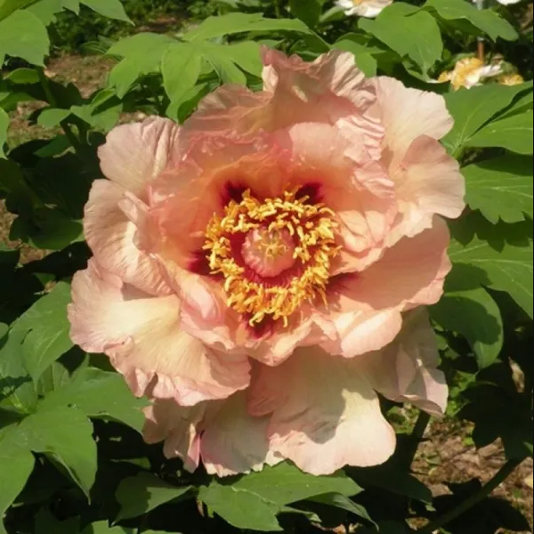 Paeonia x Itoh 'Orange Victory' sa pýši broskyňovo oranžovými kvetmi s tmavším červeným stredom. Ich jemná vôňa a výdrž po reze vo váze až jeden týždeň vypovedajú o kvalite polodrevitých krížencov Itoh.