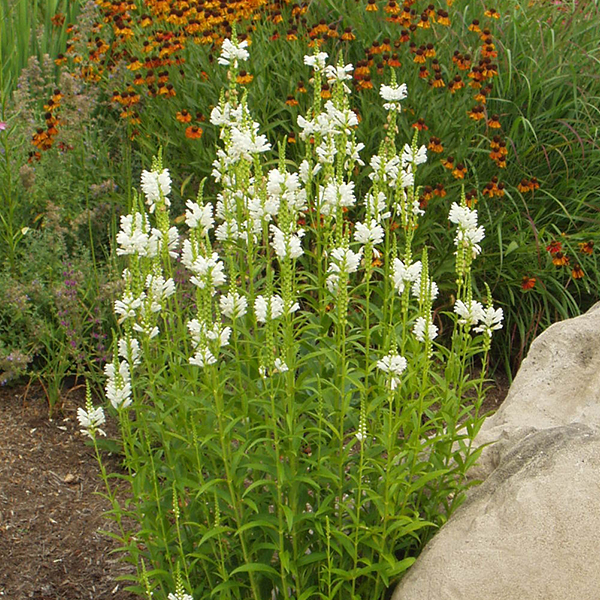 Physostegia 'Alba' - fyzostégia virgínska, je typická vidiecka trvalka obľubujúca plné slnko a živné pôdy. Kvitne od začiatku leta vzpriamenými bielymi súkvetiami, ktoré výrazne lákajú opeľovače. Tvorí trsy tuhých hranatých stoniek. Listy sú kopijovité, po okraji zúbkaté. Na pestovanie nie je náročná, vyžaduje slnečné alebo polotienisté stanovištia so strednou zálievkou. V úrodných pôdach sa rýchlo rozrastá. Odporúča sa zrezávanie po odkvitnutí súkvetí, rastlina niekedy remontuje. Kvety sú vhodné na aranžovanie do kytíc.