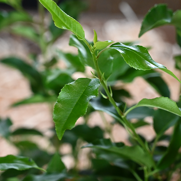 Atraktívny vavrínovec s ohnivo červenými mladými listami.