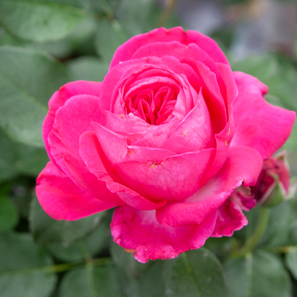 Majestátna ruža s plnými purpurovo-ružovými kvetmi.