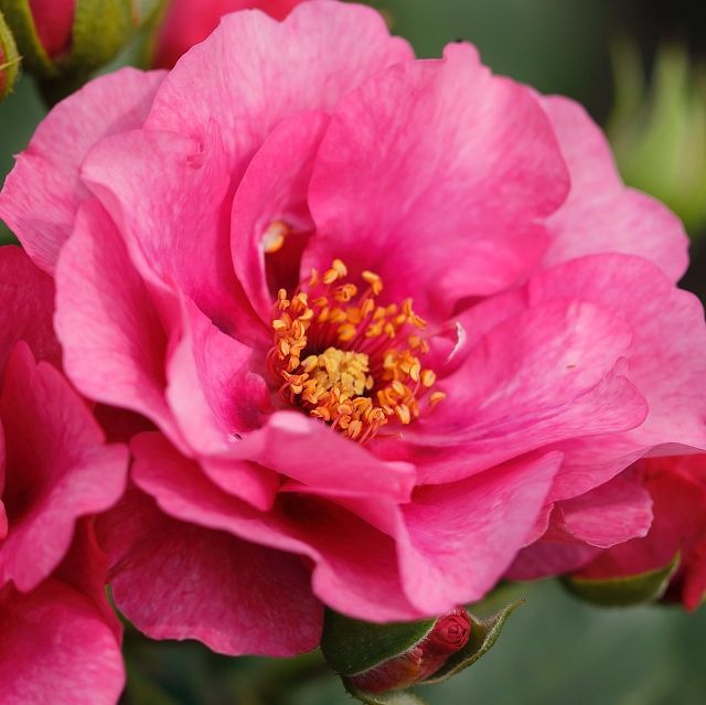 Majestátna ruža s plnými purpurovo-ružovými kvetmi.