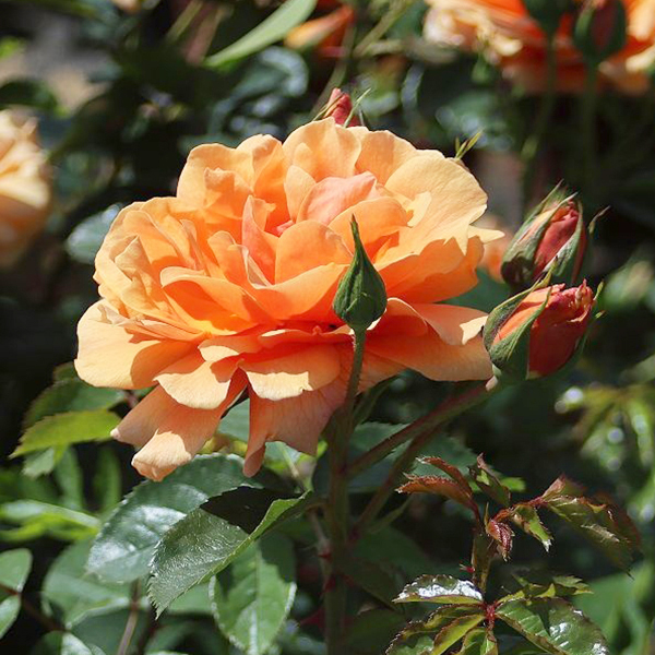 Rosa 'Skyline' je krásnou novinkou popínavej a silne aromatická svetlooranžovej ruže. Kvitne opakovane. Intenzita oranžových tónov je v porovnaní s kultivarom Naranga jemnejší. Kvety v priemere 10 cm sú vytrvalo vzhľadné po dlhé obdobie. Je dostatočne rezistentná voči čiernej škvrnitosti, odoláva aj múčnatke. Dosahuje výšku 250-350 cm. Vhodná najmä do rodinných záhrad ku terasám a altánkom, do črepníkov a mobilných nádob (s dostatočnou hĺbkou), vyniká na svetlých múrikoch, oblúkoch i trelážach.