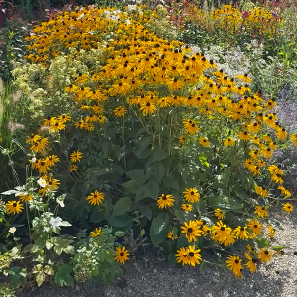 Rudbeckia fulgida ‘Deamii' je spoľahlivá trvalka neskorého leta, ktorá od augusta do októbra rozžiari záhon žltými kvetmi. Drží farbu aj vo vlhku či vetre. V porovnaní s inými rudbekiami je menej náchylná na múčnatku, preto ostáva dlho čistá a úhľadná. Je magnetom pre včely a motýle, takže pridáva hodnotu biodiverzite.