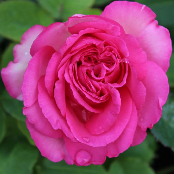 Majestátna ruža s plnými purpurovo-ružovými kvetmi.
