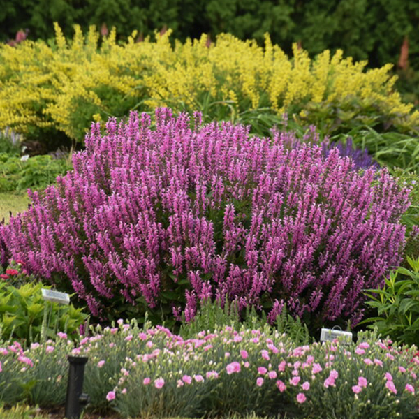 Salvia 'Color Spires Back to the Fuchsia' je novinkou roku 2021. S veľkými tmavými kvetnými púčikmi a stonkami a dokonale pevným, vzpriameným rastom, je vďačnou a na starostlivosť nenáročnou záhonovou trvalkou.
