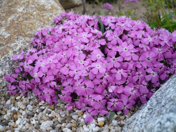 Vyhľadávaná skalnička so šedobielymi hviezdičkovitými kvetmi.