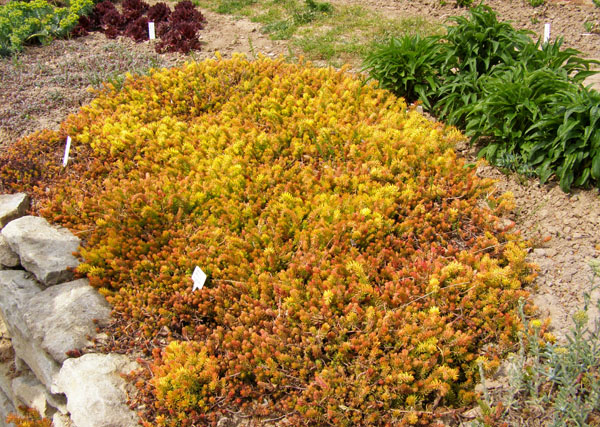 Vďačný drobný rozchodník biely, ktorý sa na zimu farbí do purpurova.