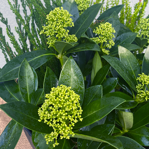 ÚvodDrevinyOkrasné kríkyKríky kvitnúce stálozelené → Skimmia 'White Globe' - skímia K2L
