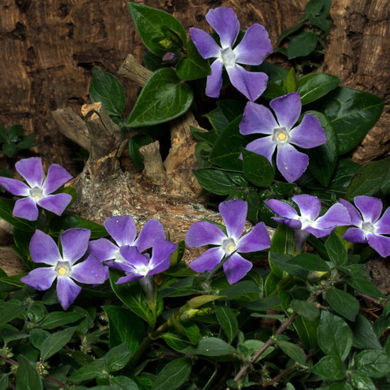 Vinca minor - zimozeleň menšia je dobre známa trvalka, ktorá je rozšírená takmer po celej Európe, pričom zasahuje až do juhozápadnej Ázie. Rastie v tienistejších lokalitách lesov, kde vytvára husté stálozelené porasty. Je to na báze drevnatejúci poloker, rozrastajúci sa pomocou plazivých stoniek.Kvety modrej farby a objavujú sa spolu s mladými svetlo zelenými listami v jarnom období. Vhodná najmä pre vytváranie hustých porastov pod korunami stromov. Sadíme ju preto vo väčších skupinách. Pre úspešné pestovanie vyžaduje polotienisté až tienisté stanovište s mierne vlhkými, humóznymi pôdami.